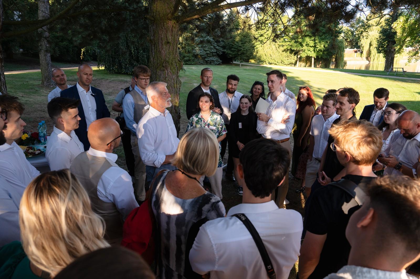 Lány, 19 sierpnia 2025 r. – W parku zamku w Lanach odbyło się inspirujące spotkanie prezydenta Petra Pavla z przedstawicielami młodych innowacyjnych firm i projektów z całej Republiki Czeskiej. Prezydent docenił ich odwagę, determinację oraz pozytywną energię, jaką wnoszą do środowiska biznesowego.